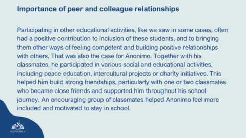 The SCIREARLY project identified transformative drivers in the educational life paths of youth belonging to vulnerable populations in eight countries. The project sought to identify and better understand the elements that may reduce and prevent early school leaving and underachievement among these groups.